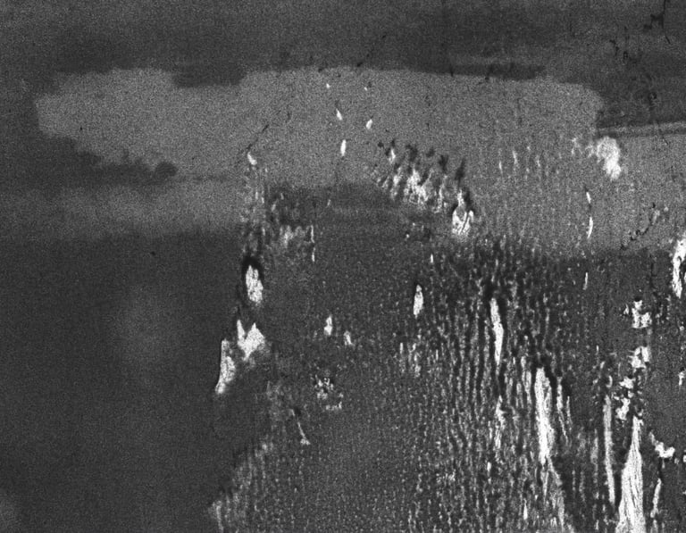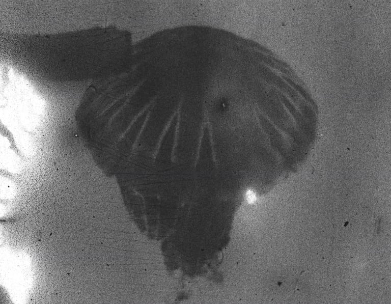A photographic emulsion is a photosensitive chemical compound used in film to create an image when exposed to light. Agnès' artisanal emulsion drives this work, crafted with the precision of a contemporary alchemist.
