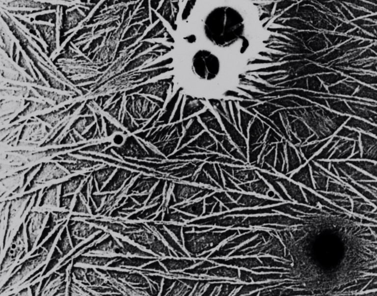 It establishes a dialogue between different emulsions: Kodak Tri-X, Kodak 3378 high contrast film, and Agnès' artisanal emulsion.