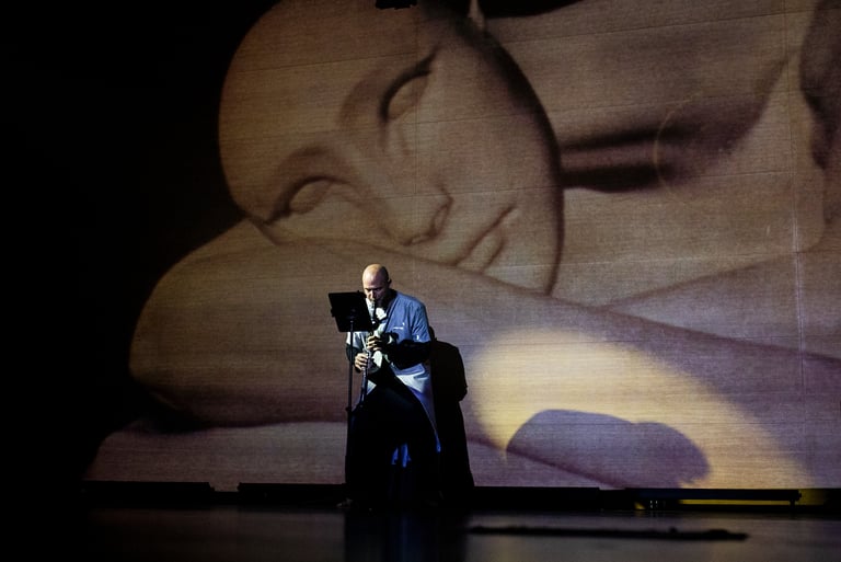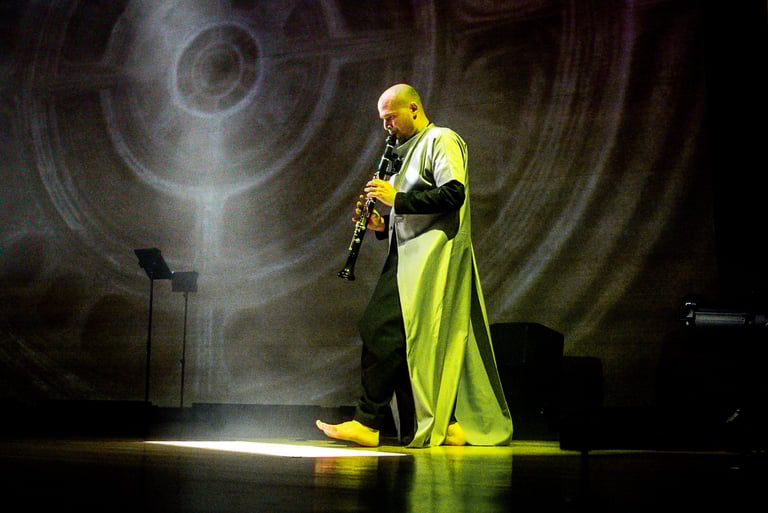 The work was created as a visual piece that interacts in perfect synchrony with the live music of Manuel Martínez, a renowned professional clarinetist, constructing an immersive experience that sits at the intersection of various artistic movements.